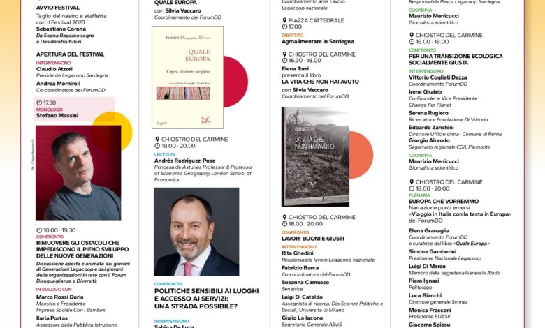 Tutto pronto a Oristano per il festival “Desiderabili futuri. Senza disuguaglianze, per un mondo sostenibile“, promosso da Legacoop Sardegna, Forum Disuguaglianze e Diversità e Dromos, con la collaborazione di Legacoop Nazionale,ASviS, CRU Unipol e Consorzio 1 Università di Oristano, e con il patrocinio del Consiglio Regionale della Sardegna e del Comune di Oristano, in programma da domani (mercoledì 26) a sabato 29 giugno.